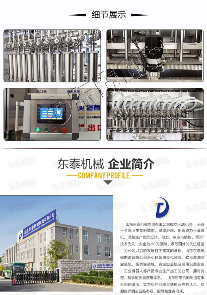 3.電腦控制灌裝機(jī)精度高。灌裝噴嘴可根據(jù)不同的瓶子自動(dòng)調(diào)節(jié),減少泡沫。